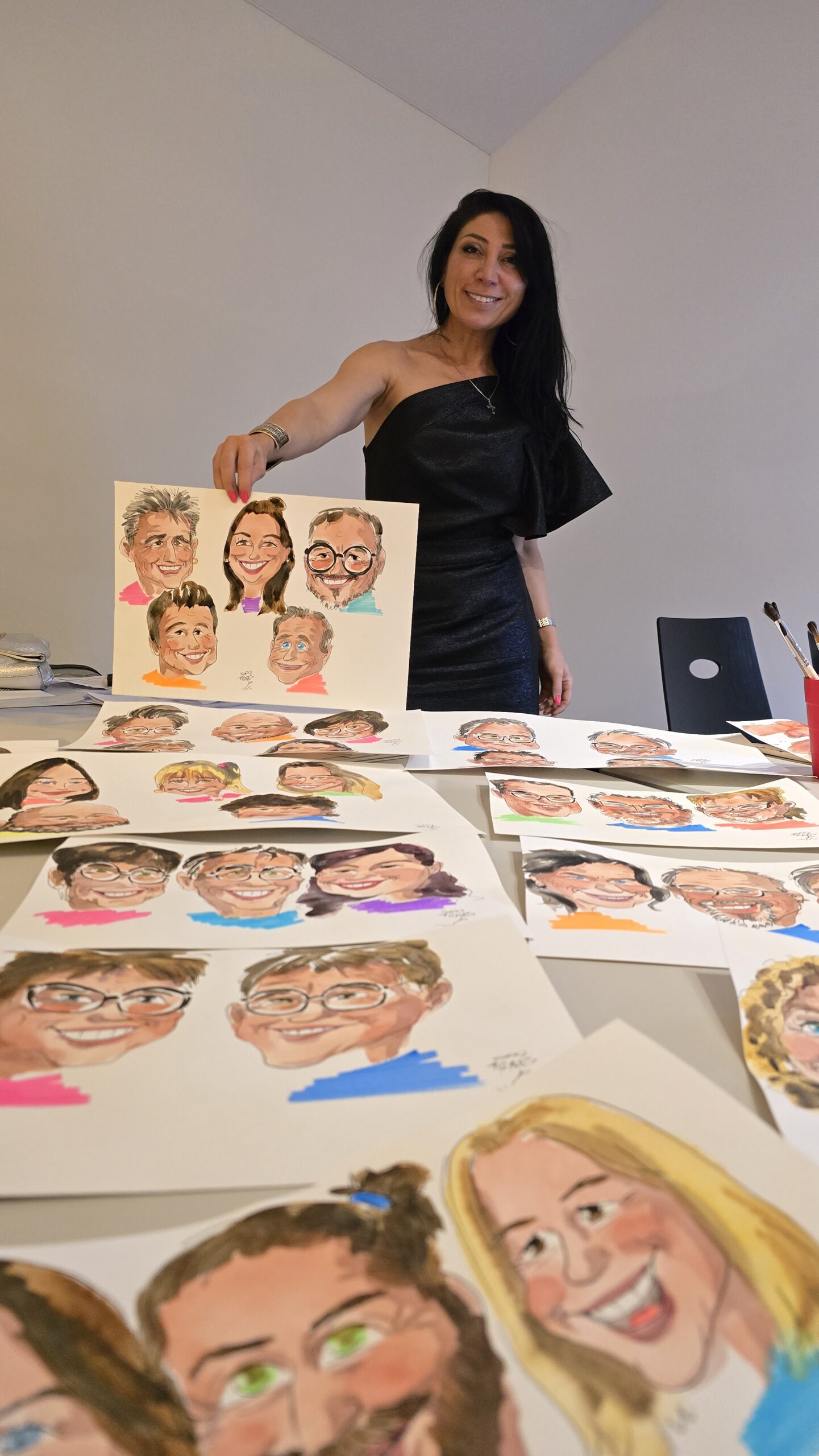 Ich liebe meine Anlässe und das Treffen so vieler neuer Menschen. Besonders spannend ist es, mehrere Personen gleichzeitig zu zeichnen. Live-Karikaturen sind für mich Austausch, Freude und Begegnung in einem.